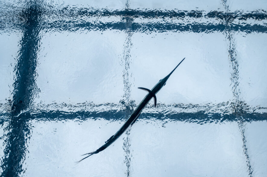 過去にはこのほかにもいくつかの水族館でバショウカジキの飼育展示の記録がありますが、アクアマリンふくしまでは2020年以降、継続的にバショウカジキの採集・飼育に挑戦しています。その結果、ここ数年は秋になると高確率で生きたバショウカジキの展示に成功しています。おそらく、世界でもここだけの展示ではないでしょうか。