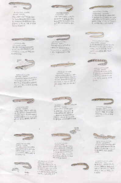 当時の図鑑が手元に残っています。実際の図鑑のように、ヌタウナギから順に描いて載せていきました。
