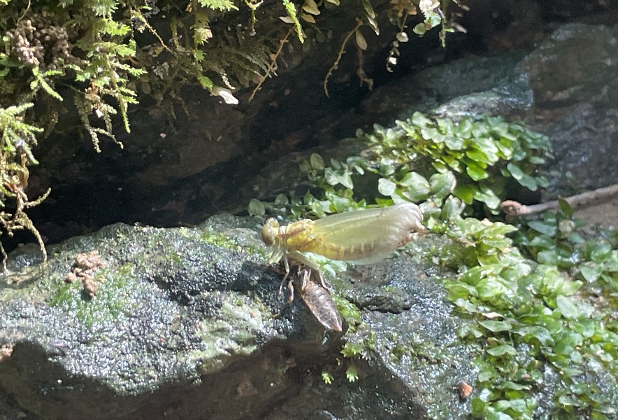 この夏、子どもたちと川遊びをしていたとき、偶然にもヤゴが羽化する瞬間に立ち会うことができました。
