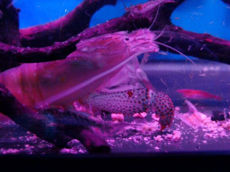 以前使っていた水槽では、アフリカンロックシュリンプと一緒にふた回りほど小さいアジアロックシュリンプも飼育していました。