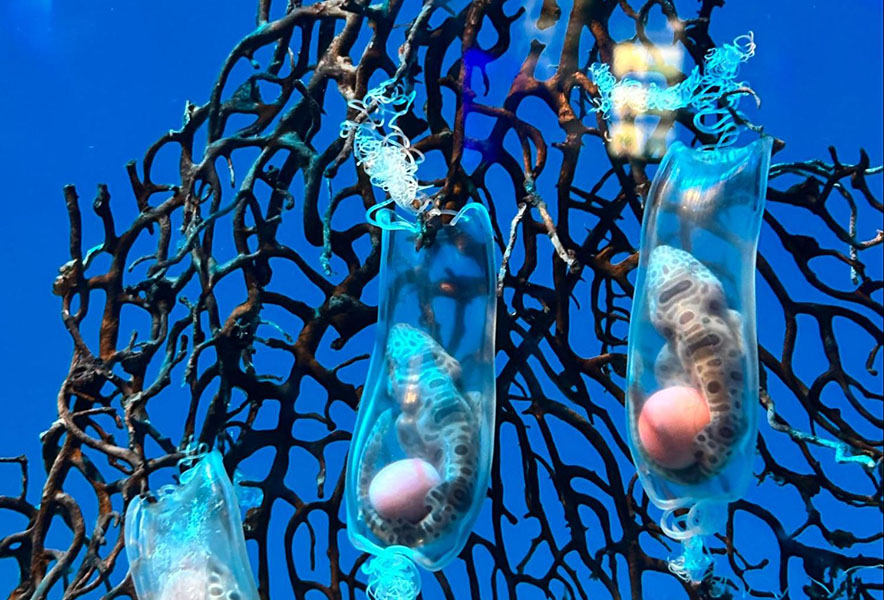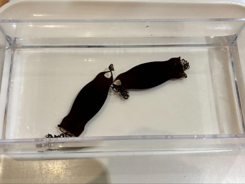また、朝早い時間の水族館ではサメの水槽に産みたての卵が落ちていたり、珍しいサメが卵を産むと展示したりと、水族館で観察できる機会もあります。そのような時も、ぜひサメの卵からどのような環境で暮らしているかを想像してみてください。