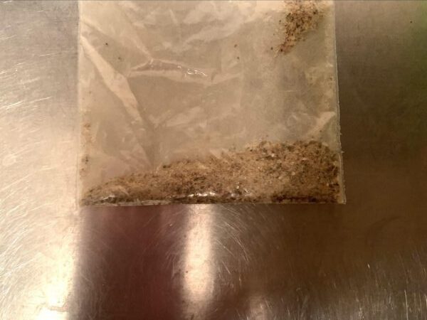 次に筆者が飼っていた魚のエサである乾燥エビを試します。エビの中身を手ですりつぶして与えてみましたが、またもや食べるそぶりは見せません。