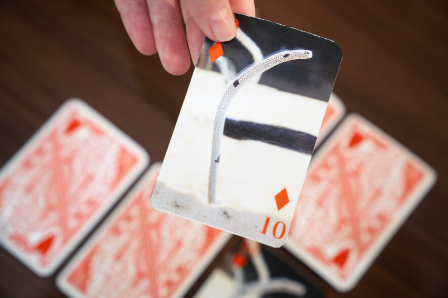 イベントでは、11枚のチンアナゴのトランプを使って神経衰弱ゲームに挑戦し、予選を勝ち上がった3名と飼育スタッフ1名の計4名で決勝戦を行い、チャンピオンを決定します。