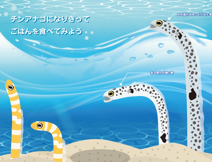 水流と摂食行動の関係など、チンアナゴの生態を科学的に解説します。