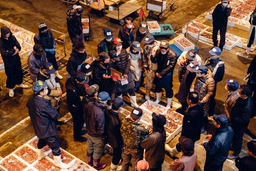 競りの様子(提供:一般社団法人加賀市観光交流機構)この短時間の漁により、鮮度の高い「加能ガニ」を水揚げすることを実現しているのです。