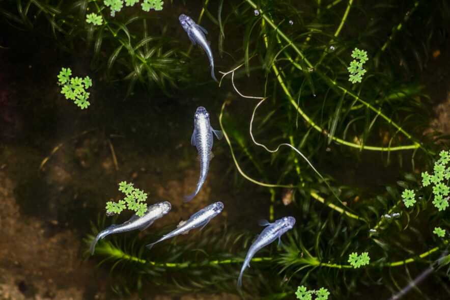 メダカ(提供:PhotoAC)メダカにもたくさん種類がありますが、その中でも私が選んだのは青白いボディと背中に特殊な光沢をもつ「幹之メダカ」でした。