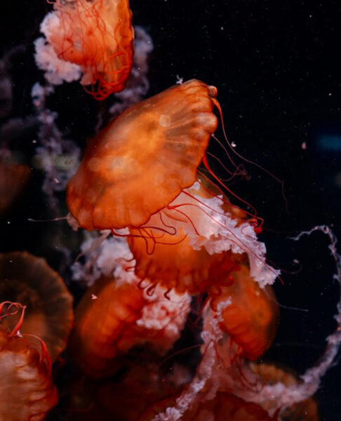 スタッフ撮影写真 イメージ(提供:京都水族館)2階「ミテッテ」エリアでは、クラゲの生態や飼育員の業務風景など、スタッフが撮影した計12点の写真を大型ポスターで特別展示。クラゲの写真に囲まれたギャラリーのような空間を楽しむことができるそうです。