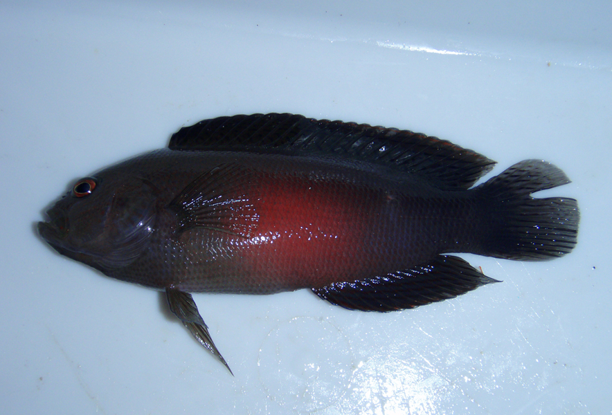 この種はガンテンメギス Labracinus ocelliferus(Fowler, 1946)と呼ばれるもので、日本国内においては徳之島、与論島、沖縄県に分布しています。