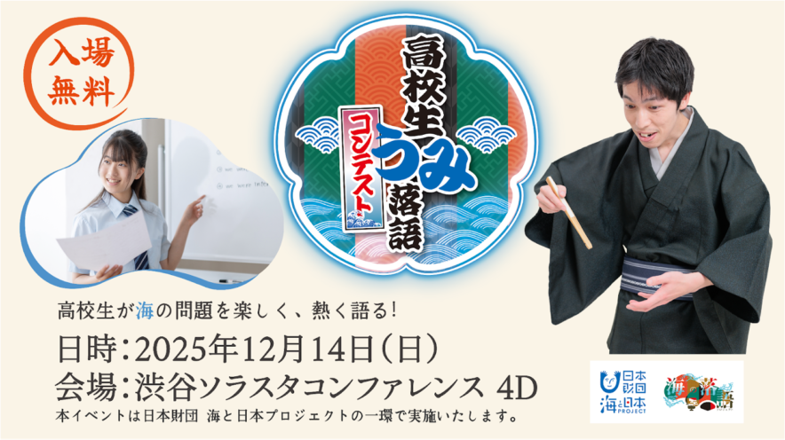 高校生らは約半年間にわたる専門家(落語家や環境科学者)の指導を受けてきており、「海洋プラスチックごみ」「漁業資源」「海洋温暖化」など多彩な海洋テーマに挑むそうです。