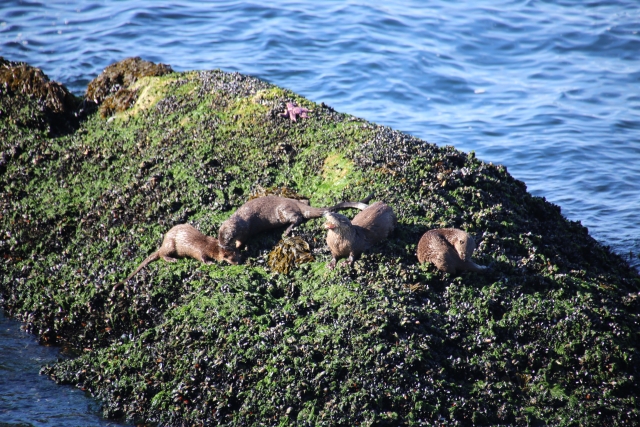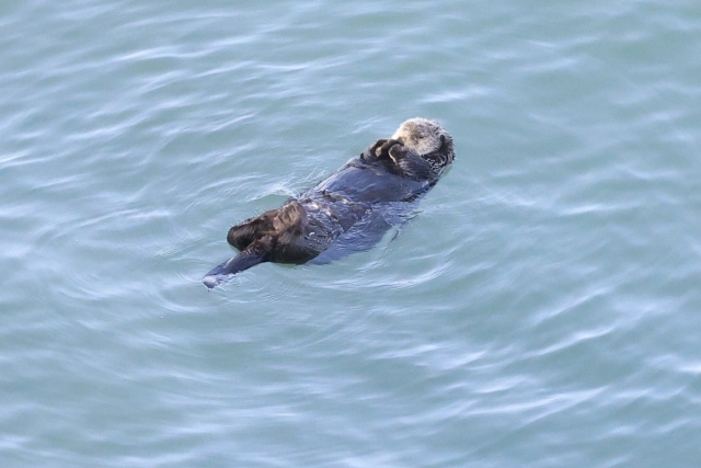 海に浮かぶラッコは、陸上から見ると波間に漂う昆布や岩と見分けがつかないこともよくあります。双眼鏡があればお腹の上で貝を割る仕草まで見られます。