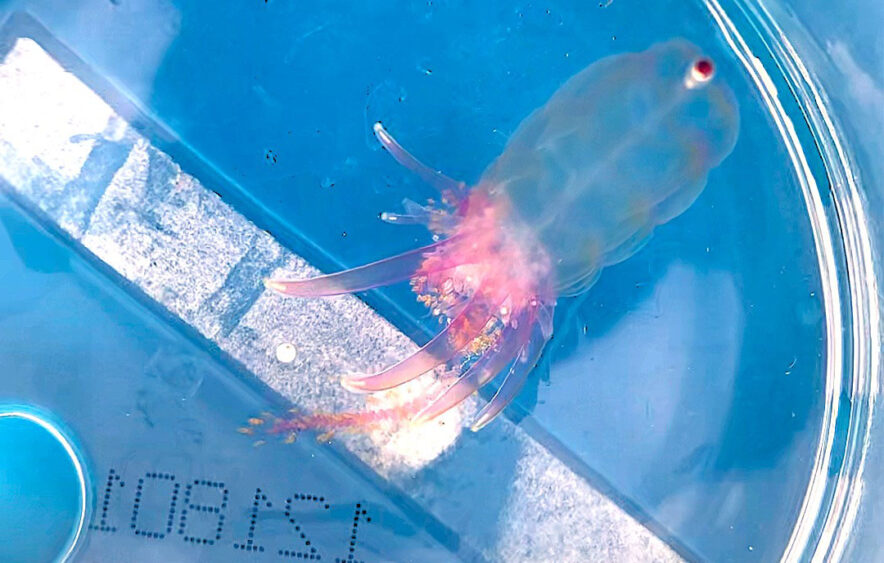 あまり見ることが出来ない種類のクラゲですが2月頃に5センチほどのサイズの個体が数回にわたって出現したのには驚きました。