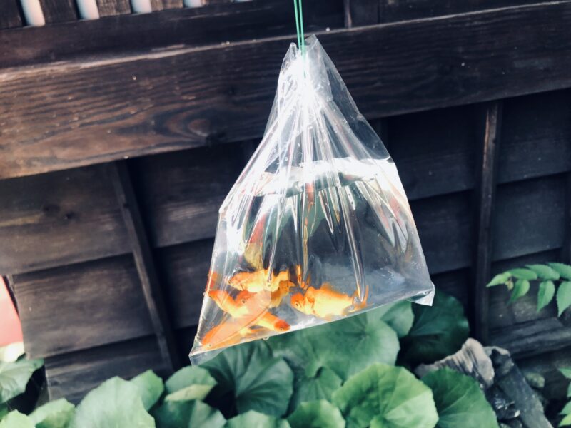 紙が破れないようにすくい上げたのは、3匹の素早い和金と、1匹のくりっとした目が愛らしい出目金。ビニール袋の中で静かに泳いでいる小さな金魚たちを見ていると、「うちの子」になったような気がして、私はとてもわくわくしていました。