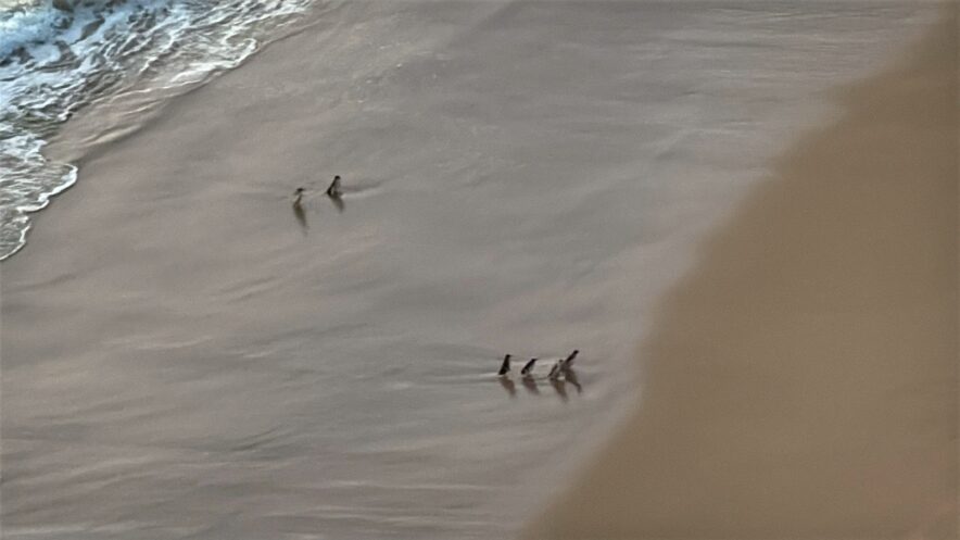 コガタペンギン(撮影:うえの かのん)私たちが観察できたのは6羽。砂浜に戻ったかと思えば波へ立ち向かい、戯れるようにまた砂浜に戻ったり、群れのみんなを待つように海の方をぼーっと眺めていたり……。