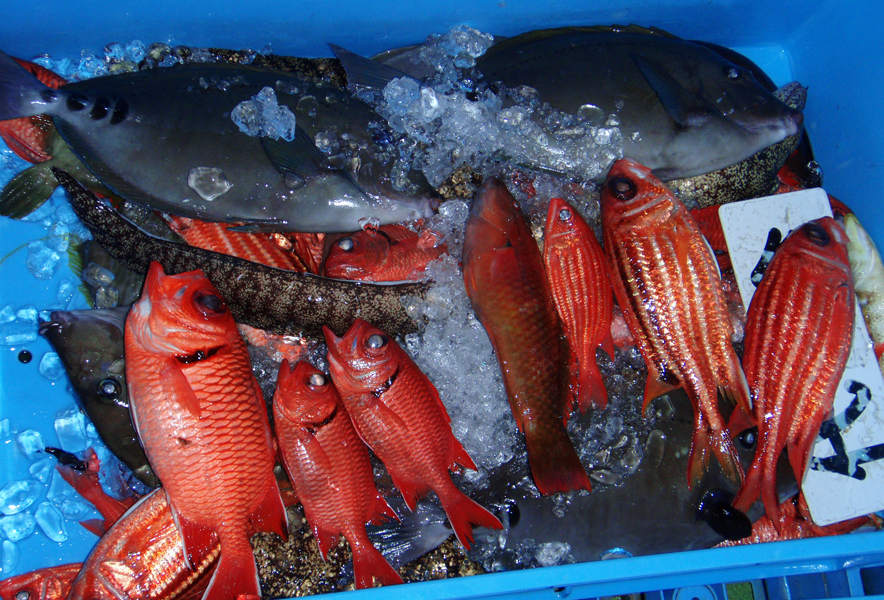 その後も何度か食べてみましたが、2013年8月のおわりに、高知県宿毛の漁協でおこなわれるセリを見学する機会があり、仲卸の方に複数の鮮魚が入った箱を競り落としてもらいました。
