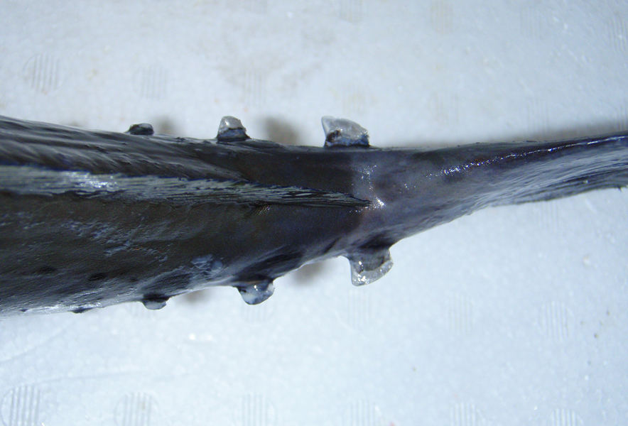 ニザダイの尾柄部にある棘状の板。取り扱いに注意(提供:椎名まさと)