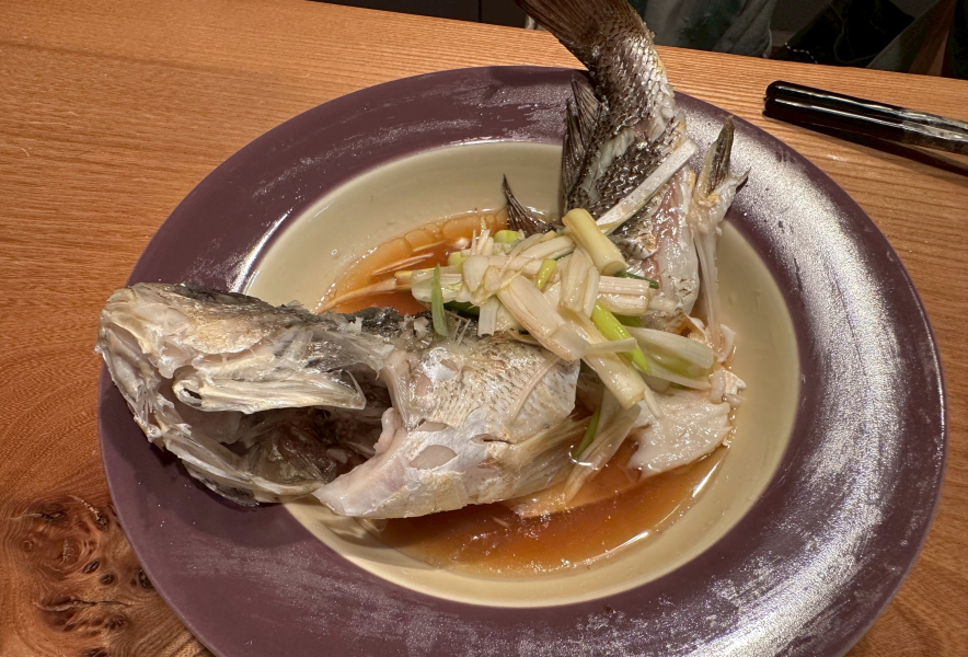 イシモチの香味蒸し(提供:秋津)クセのない味と聞いていたイシモチでしたが、ごま油に負けないほどの旨味があり、想像以上に美味しい魚でした。ごま油と魚の旨味が合わさると、ご飯がすすむ味になります。