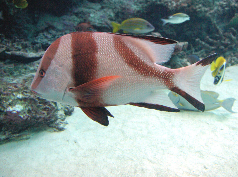 センネンダイ(学名:Lutjanus sebae)はスズキ目フエダイ科の大型魚。まれに1mほどにもなる魚です。