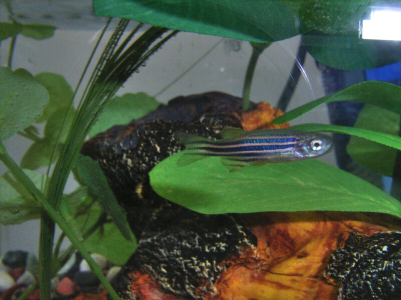 ゼブラフィッシュ(学名:Danio rerio)はインド原産の約4センチほどの淡水魚です。体にきれいな銀色と青色の縞模様があることから、シマウマ(ゼブラ)にちなんで、この名がつきました。