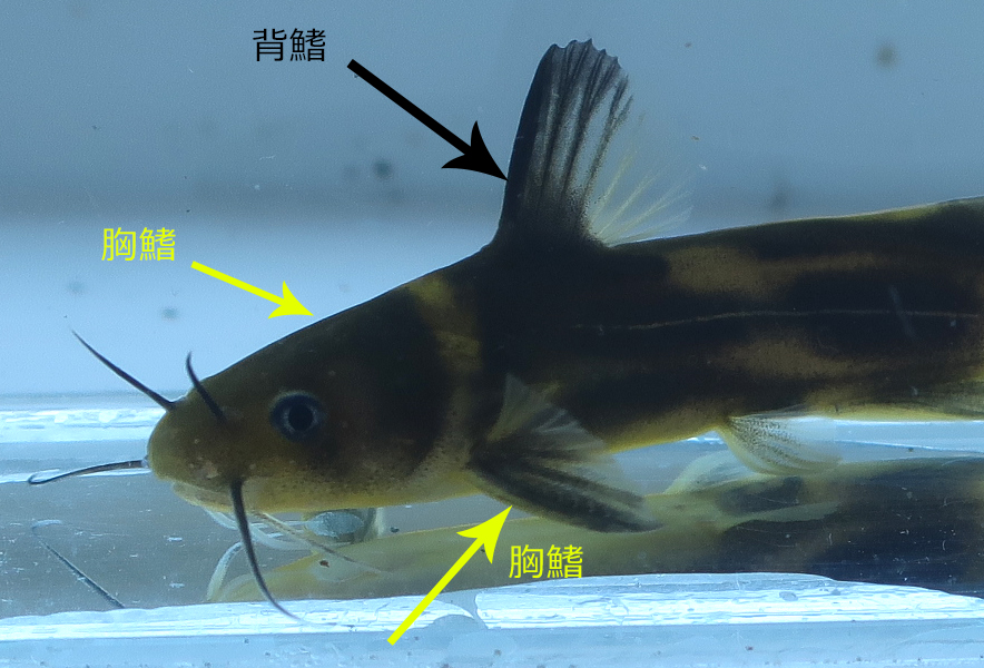これは胸鰭の棘を使って発音するとのことですが、残念ながら筆者はこの音を聞くことはできていません。そして注意しなければならないのはその棘で、ギバチ属の魚はこの胸鰭の棘と背鰭棘に毒があるのです。