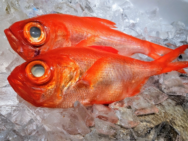 キンメダイは日本近海に分布し、水深約200~800メートルに生息している深海性の海水魚です。国産のものは高級魚の扱いで、料亭やお高めの寿司屋で出会うこともあります。