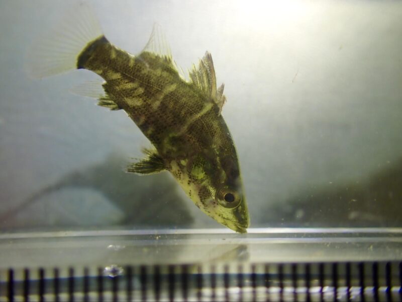 成魚とは違い、幼魚時は金色の縞模様が美しい(撮影:川鮫工房)体長はわずか3cm。それでも、間違いなく憧れ続けたアカメでした。図鑑の中の存在だった魚が、今、手の中にいる──その事実に、1日の疲れが一気に吹き飛びました(笑)。