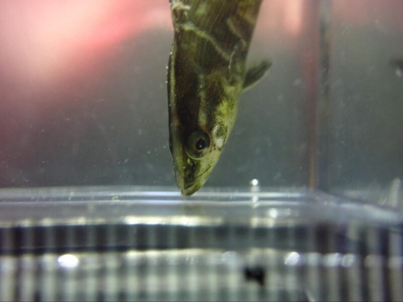 頭を常に下へ向けるアカメの幼魚(撮影:川鮫工房)その様子から、きっと幼魚の間は、アマモ場などの水生植物などに身を隠しながら、餌となる生き物を捕食したり、あるいは、捕食されないように生活をしているんだろうなと想像が膨らみました。