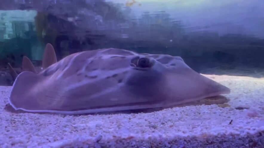 水槽下部に入ることができ、オーストラリア近海に生息するノコギリエイの仲間であるフィドラーレイを間近で観察することができました。