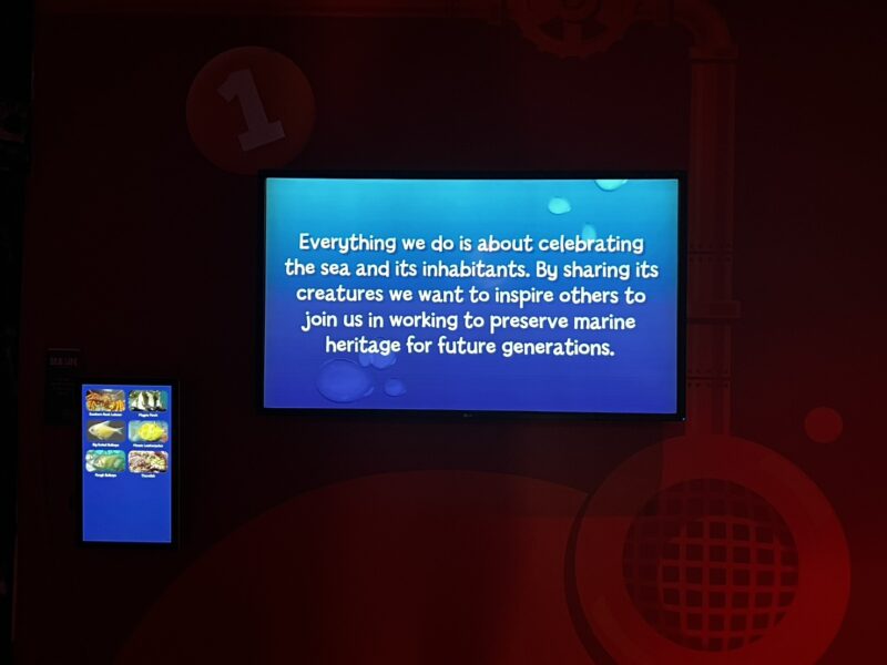 水族館からのメッセージ(撮影:うえの かのん/撮影場所:SEA LIFE Melbourne Aquarium)「私たちが行うことは、海とそこにすむ生きものたちを称えることを目的としています。それらの生きものを紹介することで、未来の世代のために海の遺産を守る取り組みに、より多くの人が参加してくれることを願っています」とあります。