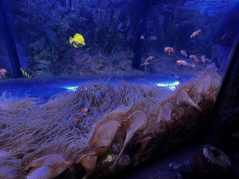 さらに先へ進むと、魚の水槽がいくつかあり、日本の水族館でも観察できる熱帯魚などが展示されています。
