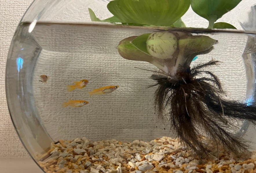 「やったー!ありがとうメダカたち!」と急いで別容器に水を張り、ホテイアオイごと移します。しばらくすると子メダカたちが次々に増え、私はホクホクしていました。