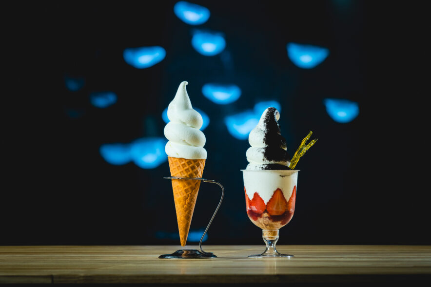 クラゲ水槽とシメパフェ(提供:株式会社青々)
