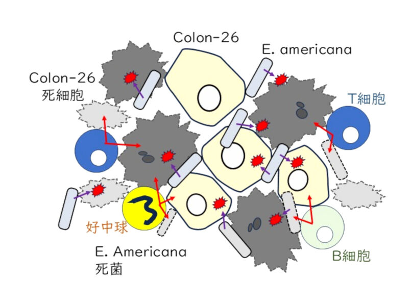 E.americanaによるColon-26腫瘍への抗腫瘍効果のイメージ(作成:額田善之)
