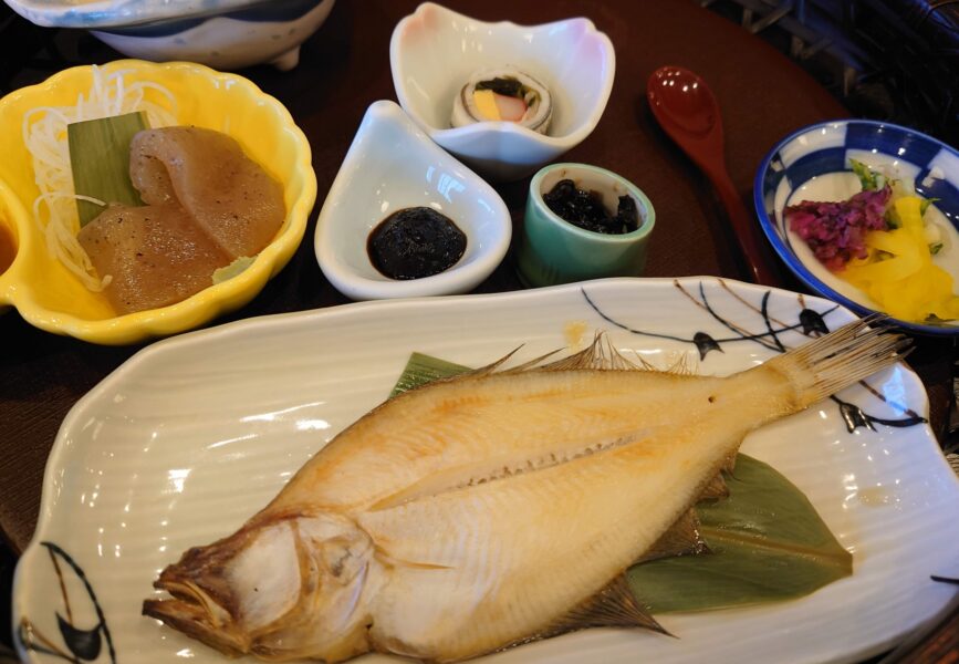 温泉カレイの朝食(提供:PhotoAC)温泉カレイが朝食に選ばれる理由の一つは、サイズと食べやすさです。