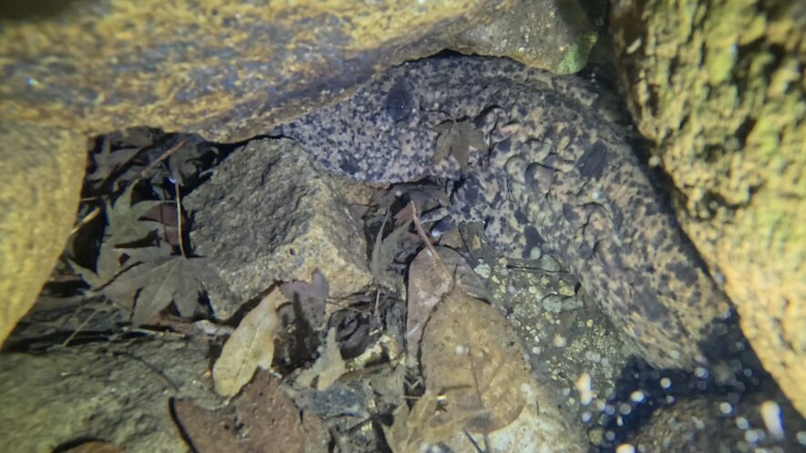 水深3.1mで発見されたオオサンショウウオ(提供:NPO法人赤目四十八滝渓谷保勝会)