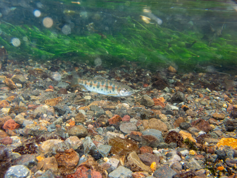小川を泳ぐヤマメ(撮影:みのり)さて、ヤマメを仕留めた私の次なる目標は降海型の野生のサクラマス。野生のサクラマスをしっかり収めることで、私の中の「ヤマメ・サクラマス物語」はようやく一区切りとなるでしょう。