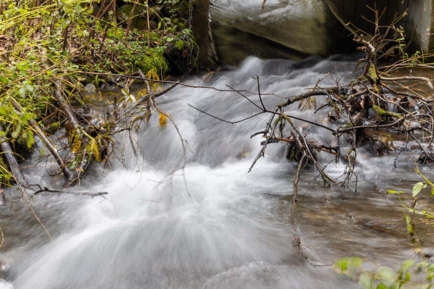 小川は木々にさえぎられている(撮影:みのり)対して、この小川は小さいが故に、上空から見ても流れが木々に遮られ、川そのものが目立ちにくい環境にあります。鳥類にとっても、この小川の魚は狙いにくいのでしょう。