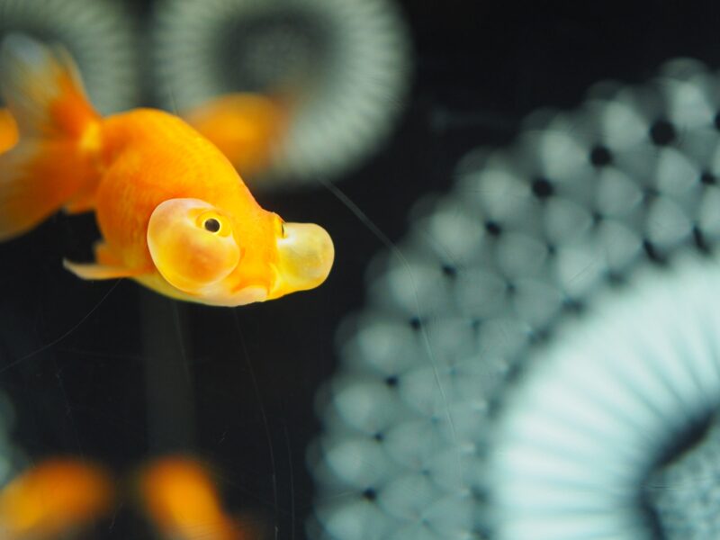 ノコギリウニなどのウニに加え、縁起物として親しまれ、ランタンのモチーフとしても定番の「金魚」を深掘りするコーナーでは、水泡眼・ピンポンパールなど個性的な品種が紹介されます。