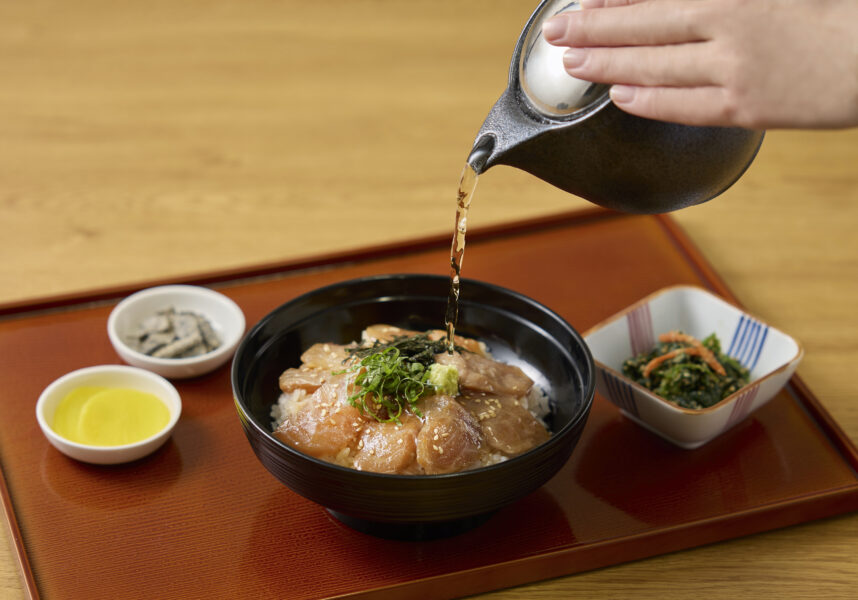東京湾で獲れた新鮮な“江戸前クロダイ”を特製の梅生姜ダレに漬け込んでおり、海鮮丼として楽しんだ後には製造過程で出る「はしっこ茶」でお茶漬けにすることができます。