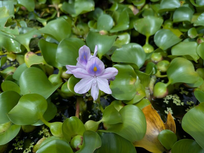ホテイアオイは、まるっとしたかわいらしい葉が特徴の浮草です。根は細かい毛がたくさん生えており、メダカの産卵場所や隠れ家に最適です。