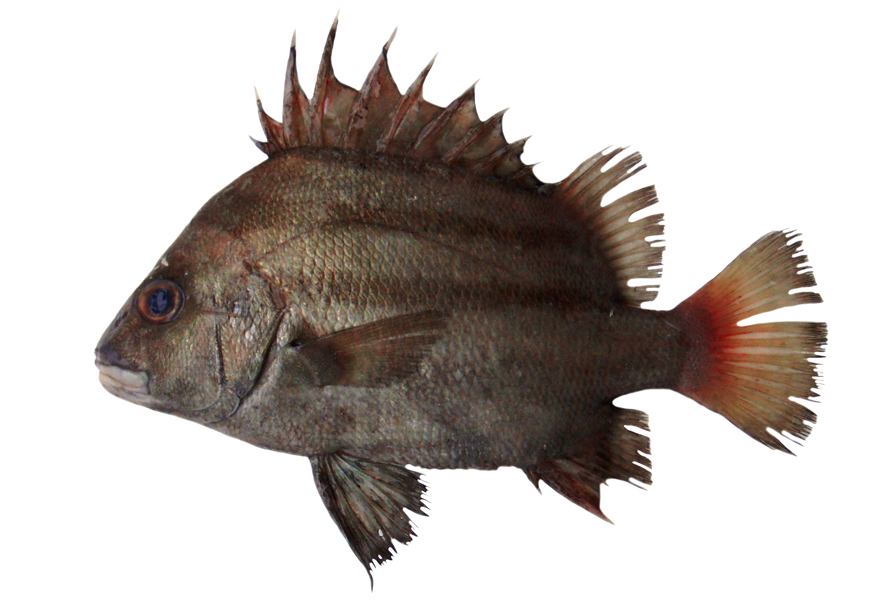 愛媛県産のセトダイ(提供:椎名まさと)一方、コショウダイのことも「たもり」と呼ぶらしく、榮川(1982)によれば、「広く遊泳せず、小範囲を行き来していることから、田を見回る農夫に例えて『田守り』の意でよぶ」との記述もみられます。