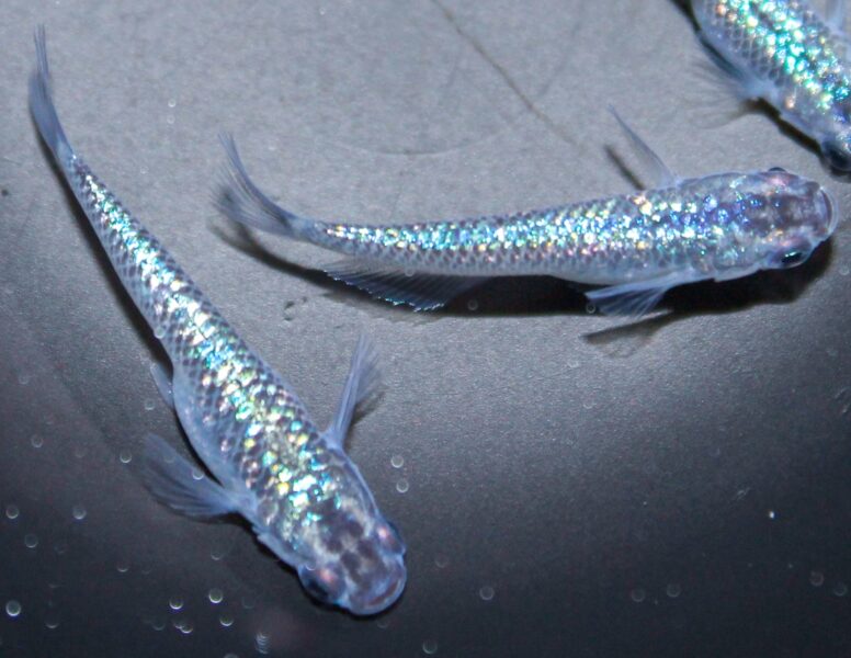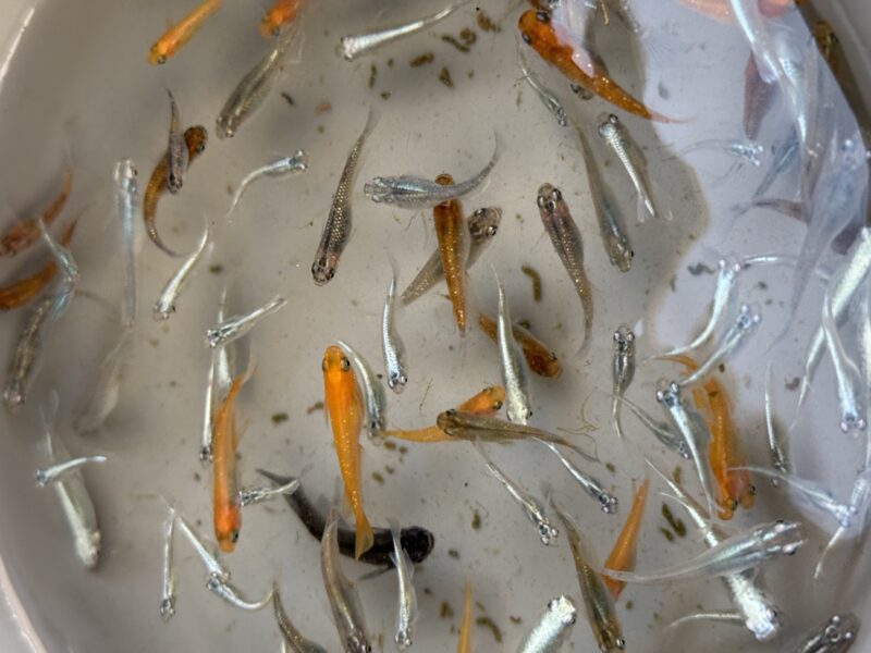 今回の研究の一番の発見は、体が真っ黒のメダカ品種「オロチ品種」の原因となる変異の発見とのこと。