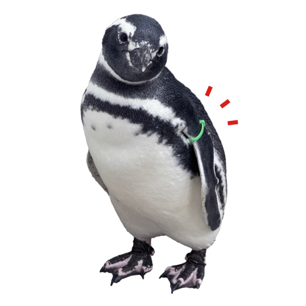 <画像>カラーバンドをつけたすみだ水族館のペンギン(提供:株式会社ワールドパーティー)傘ケース&本体に施したペンギンのキュートな刺繍もポイントで、さりげなくペンギンと“おそろい”気分になれます。
