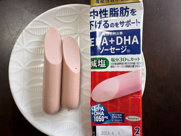 DHAとEPAを豊富に含む特定保健用食品の魚肉ソーセージで、心血管疾患のリスクを低減する効果が期待できるようです。