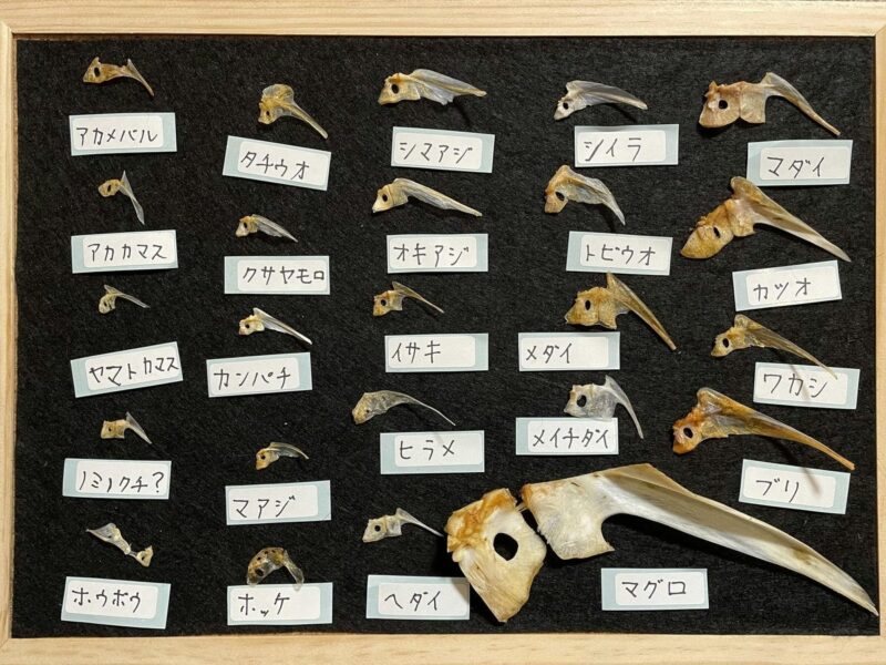 鯛の鯛標本(提供:佐々木蒼大さん)鯛の鯛は人間の肩甲骨にあたる部分で、魚においては胸びれを支える役割をもつ骨です。胸ビレのある硬骨魚類にはほとんどの種で存在することから、多様な魚で確認できます。