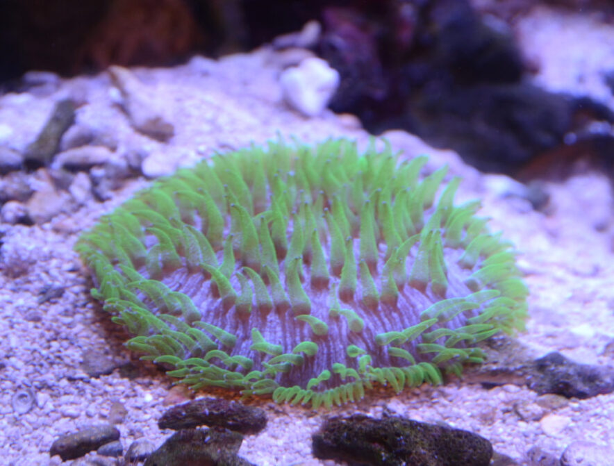 なお、クサビライシがポリプを伸ばすとイソギンチャクのような姿になるので、その変貌ぶりに驚くことでしょう。まるでウニがイソギンチャクに変身したように見えるのです。