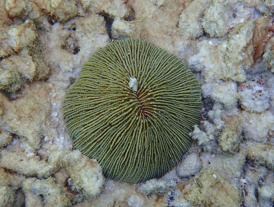 クサビライシ」と呼ばれるサンゴの仲間は、ゆっくりと海底を移動することができる珍しい存在なのです。