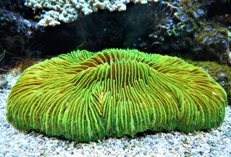 軟体部分をぜん動運動させて動くため、移動速度はとてもゆっくりですが、サンゴの中では珍しく、独特な生存戦略です。