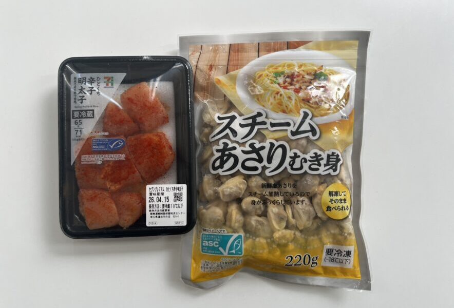 トップバリュ「スチームあさりむき身」(撮影:サカナト編集部)イオンリテール株式会社のプライベートブランド「トップバリュ」のサイトによると、MSC認証商品は427品、ASC対象商品は448件が販売されているようです(「トップバリュ環境配慮商品とは?」より。2026年2月28日時点)。