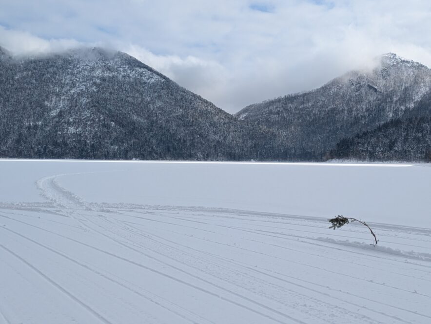 冬の十勝平野(撮影:魚屋天然堂)然別湖は帯広空港から車で2時間弱、大雪山国立公園内にあります。道内で一番標高の高いところにある自然湖で、“天空の湖”などと呼ばれることもあるようです。