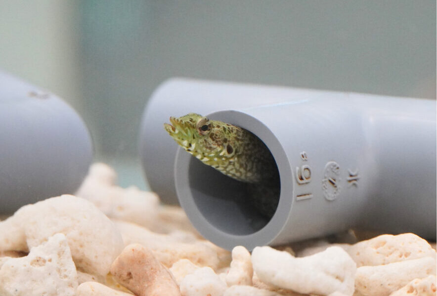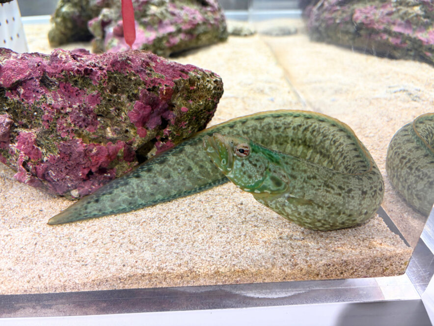 展示では、大きさの違いを見比べられるほか、物陰に身を潜める習性や、成長にともなって変化する体の模様など、センニンガジならではの特徴をじっくり観察できます。